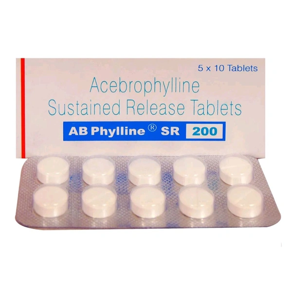 AB Phylline SR 200 Tablet is used to prevent and treat asthma and chronic obstructive pulmonary disease (COPD) symptoms in children. It contains Acebrophylline, which relaxes muscles and widens the lungs' airways. Additionally, it helps reduce the mucus's viscosity in the airway and facilitates breathing. It helps to cough out easily and makes breathing easier by opening airways. Common side effects of AB Phylline SR 200 Tablet include diarrhoea, nausea, vomiting, dizziness, heartburn, stomach discomfort, skin rash or drowsiness.