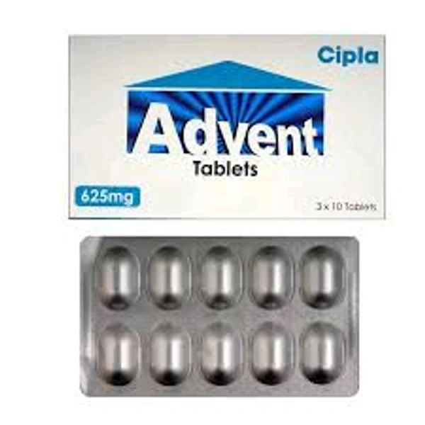 Advent 625 Tablet is a combination of two medicines: Amoxycillin and Clavulanic acid. It is used to treat bacterial infections like, tonsillitis, sinusitis, otitis media, respiratory tract infections, urinary tract infections, boils, abscesses, cellulitis, wound infection, bone infection, and oral cavity infections.