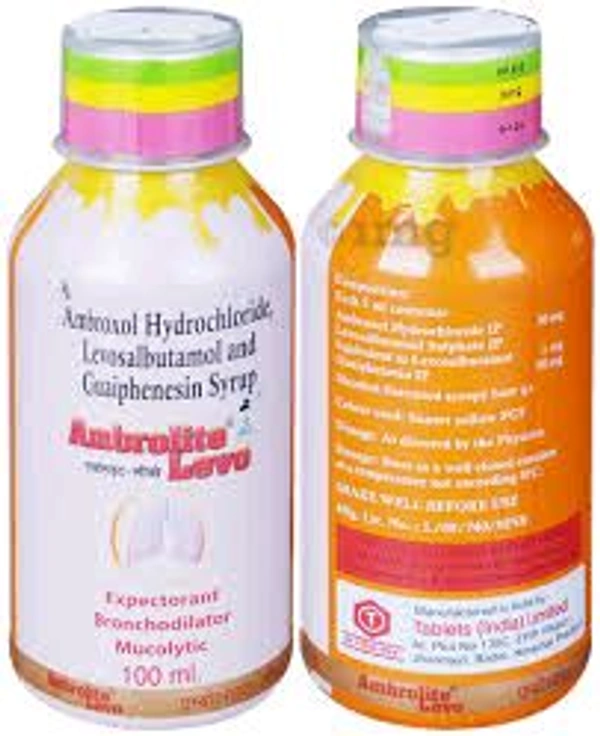 Ambrolite Levo Syrup is a combination of three medicines: Ambroxol, Levosalbutamol / Levalbuterol, Guaifenesin. It is used in the treatment of cough with mucus. Ambroxol is a mucolytic. It thins and loosens the mucus (phlegm) which makes it easier to cough out.