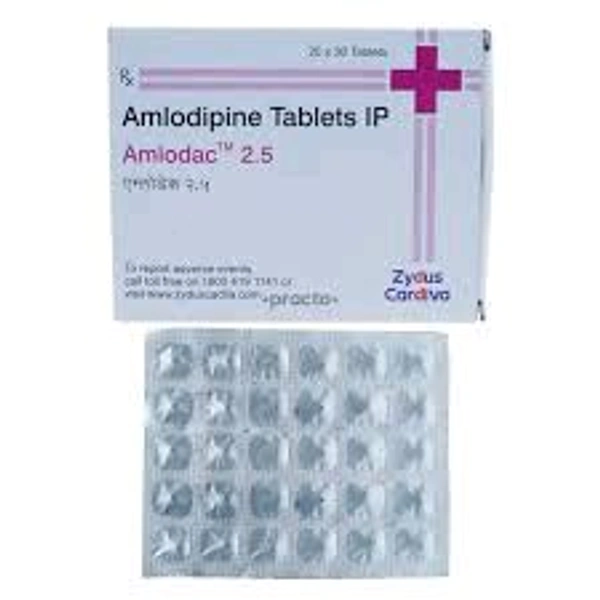 Amlodac 2.5 Tablet belongs to a class of medicines known as calcium channel blockers. It is used to treat high blood pressure (hypertension) and prevent angina (heart-related chest pain). It lowers blood pressure and reduces the heart's workload, which helps prevent heart attacks and strokes.