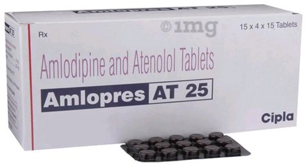 Amlopres AT 25 Tablet is used to treat hypertension (high blood pressure) and angina. This is a combination of two medicines that controls blood pressure when a single medication is not effective. It helps to lower high blood pressure and thus reduces the chances of future heart attack and stroke.