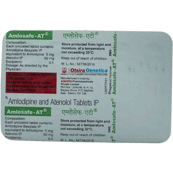 Amlosafe-AT Tablet is used to treat hypertension (high blood pressure) and angina. This is a combination of two medicines that controls blood pressure when a single medication is not effective. It helps to lower high blood pressure and thus reduces the chances of future heart attack and stroke.