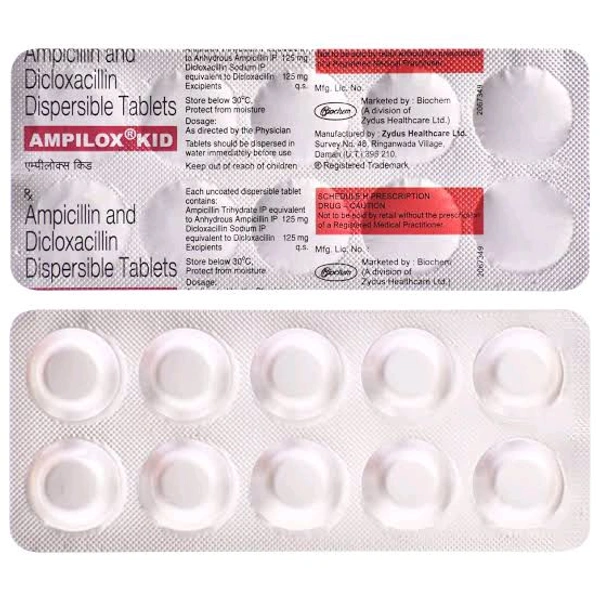 Ampilox Kid 125 mg/125 mg Tablet is an antibiotic medicine that is effective against a multitude of bacterial infections affecting ears, nose, sinus, tonsils, throat, lungs, heart, skin, and bones. It may also be effective in treating infections that are caused by resistant bacteria.
