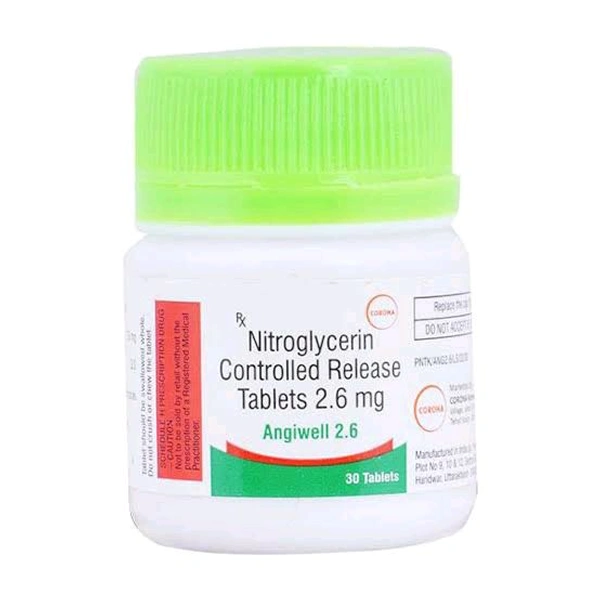 Angiwell 2.6mg Tablet is used to treat and prevent heart-related chest pain (angina). Angina occurs when the heart muscle is not getting enough blood. This medicine works by relaxing and widening blood vessels so blood can flow more easily to the heart.