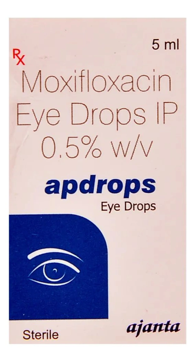 Apdrops Eye Drops 3 ml contains moxifloxacin, an antibiotic used to treat eye infections caused by bacteria such as conjunctivitis and corneal ulcers. This medicine stops the growth of bacteria by inhibiting the gyrase enzyme and thereby helps reduce bacterial eye infections. This medicine is not effective for treating viral infections. Sometimes, you may experience certain common side effects, such as eye discomfort, irritation, eye pain, and stinging sensation.