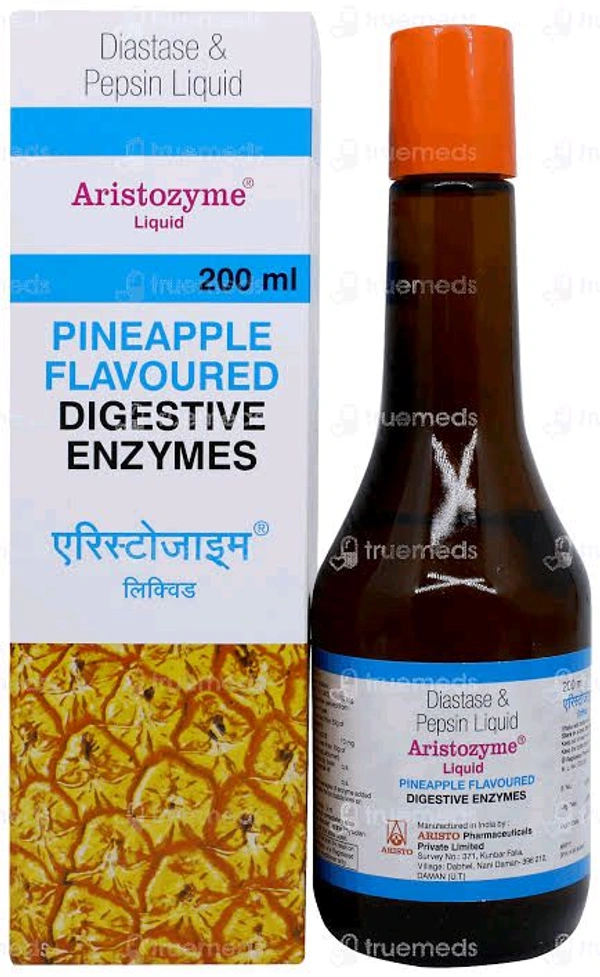 Aristozyme Liquid is used to treat digestive disorders like gastric problems, appetite stimulation, pancreatic insufficiency, and burping. It works by improving the ability to digest complex forms of food and preventing gas formation and discomfort in the stomach.