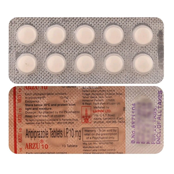 Arzu 10 Tablet is an antipsychotic medicine. It is used in the treatment of schizophrenia (a mental disorder that can result in hallucinations or delusions and also adversely affects a person's ability to think and behave) and mania. It can also be used to treat depression and bipolar disorders.
