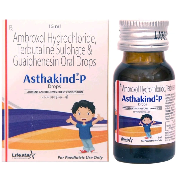 Asthakind P Drops is used to treat cough associated with mucus. It works by thinning and loosening phlegm (mucus) in the lungs, windpipe, and nose. Also, it increases the volume of fluid in the airways, reduces the stickiness of mucus, and removes it from the airways. It relaxes muscles and widens the airways. Thus, it makes breathing easier. Some people may experience side effects such as nausea, vomiting, drowsiness, headache, dizziness, skin rash, nervousness, tremors, stomach upset, and fast heartbeats. Before taking this medicine, you should tell your doctor if you are allergic to any of its components or if you are pregnant/breastfeeding, and about all the medications you are taking and pre-existing medical conditions