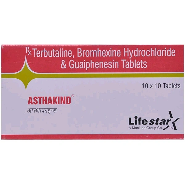 Asthakind Tablet is a combination medicine which belongs to the class of expectorants. It is used in the treatment of wet/productive cough associated with bronchial asthma, bronchiectasis, chronic obstructive pulmonary diseases (COPD), bronchitis, and emphysema. This medicine works by increasing the volume of fluid in the airways, reducing the stickiness of mucus, and removing it from the airways. Common side effects include nausea, diarrhoea, vomiting, stomach discomfort, sweating, muscle cramps, dizziness, and headache.