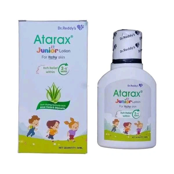 Atarax Junior Lotion is used for soothing itchy and irritated skin. It supports calming of the skin and helps maintain hydration. The lotion encourages a comfortable feeling on sensitive areas and may be applied when mild discomfort or itching is experienced.