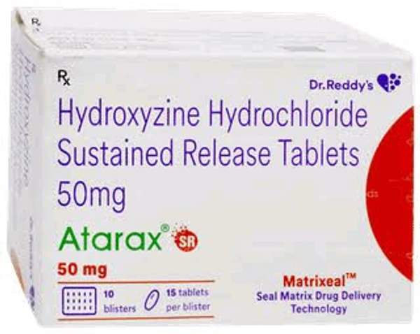 Atarax SR Tablet (hydroxyzine) is a sustained-release antihistamine used to treat allergic skin conditions—such as itching, rashes, eczema, and dermatitis—by blocking histamine. It is also prescribed to reduce anxiety and tension, or as a sedative before/after surgery. It works by decreasing brain activity.