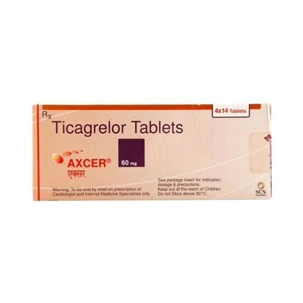 Axcer 60mg Tablet belongs to a group of medicines called antiplatelet or blood thinners. It reduces the formation of harmful blood clots in blood vessels, which helps to prevent heart attacks or strokes in people with heart disease.