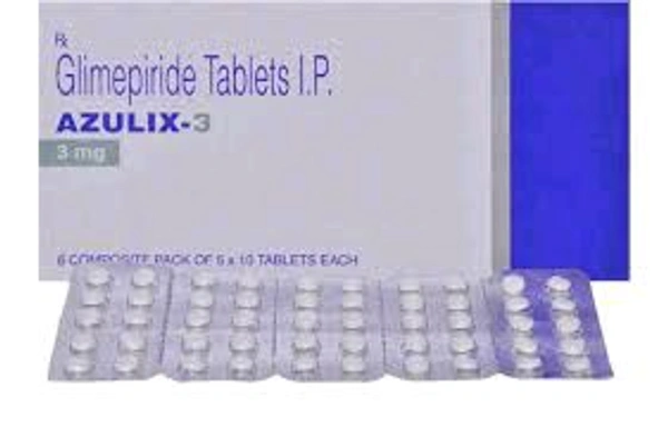 Azulix-3 Tablet is used to lower raised blood sugar levels in Type 2 diabetes mellitus (non-insulin-dependent diabetes mellitus - NIDDM). It contains Glimepiride which acts on insulin-secreting cells called beta cells inside the pancreas and activates calcium channels on cells which lets insulin pass out of the cell.