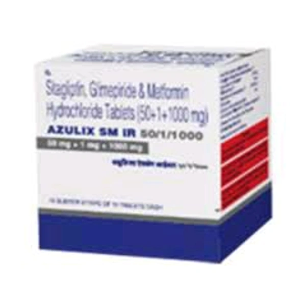 Azulix SM IR 50/1000/1 Tablet is an antidiabetic medicine used to treat type II diabetes. Type II Diabetes Mellitus is a serious condition wherein the body doesn't use insulin effectively, which causes unusual blood glucose levels.