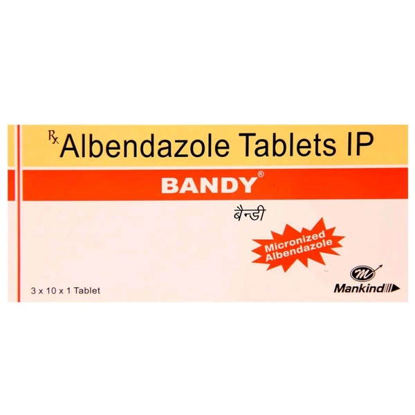 Bandy Tablet is used to treat parasites worm infections like neurocysticercosis (infection caused by pork tapeworm) and cystic hydatid disease (infection caused by dog tapeworm). Additionally, it is also used to treat infections caused by roundworms, hookworms, threadworms, whipworms, pinworms, flukes, and other parasites. It contains Albendazole, which causes metabolic disruption and energy depletion in the parasite and leads to its immobilisation. Thereby, kills the susceptible helminth and treats the infection. In some cases, it may cause certain common side effects, such as stomach pain, nausea, vomiting, headache, and dizziness. Before taking this medicine, you should tell your doctor if you are allergic to any of its components or if you are pregnant/breastfeeding, and about all the medications you are taking and pre-existing medical conditions.