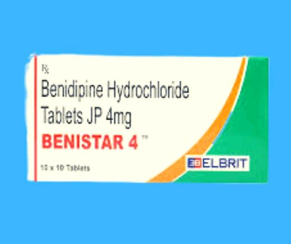 Benistar 4 Tablet is a medicine used to treat hypertension (high blood pressure) and Angina (heart-related chest pain). It belongs to a group of medicines that block the calcium channels in the blood vessel. It works by relaxing the blood vessels in patients with high blood pressure.