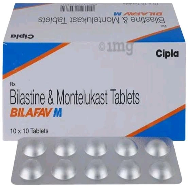 Bilafav Tablet is an antihistamine that is used to relieve the symptoms of allergic rhinitis (sneezing, itchy nose, nasal secretion, nasal congestion, and red streaming eyes) and other forms of allergic conditions. It can also be used to treat itchy skin rashes (wheals or urticaria).