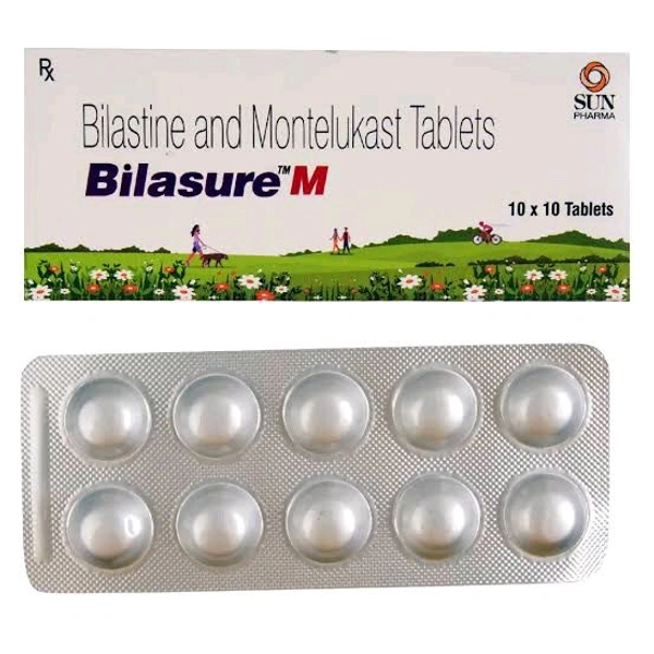 Bilasure M 20mg/10mg Tablet provides relief from allergic symptoms such as blocked or runny nose, sneezing and itchy or watery eyes caused by seasonal hay fever (allergic rhinitis), seasonal allergies, and allergies. It works by reducing certain substances in the body that are responsible for the allergic symptoms.