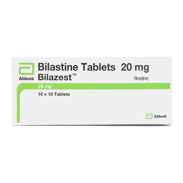 Bilazest 20 Tablet is used to treat various kinds of allergic symptoms like blocked/runny/itchy nose, red/watery eyes, and skin rashes. It contains Bilastine which blocks the effects of histamine, a chemical messenger naturally involved in allergic reactions. Thus, it helps to relieve the discomfort and unpleasant symptoms that occur due to allergic conditions. It may cause side effects such as abdominal pain, headache, dizziness, dry mouth, sore throat, nausea, cold-like nose symptoms (in children), or diarrhoea (in children). Before taking this medicine, you should tell your doctor if you are allergic to any of its components or if you are pregnant/breastfeeding, and about all the medications you are taking and pre-existing medical conditions.