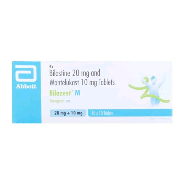 Bilazest M Tablet is used to treat symptoms of allergic conditions like sneezing, runny nose, congestion, stuffy nose or watery eyes. It works by blocking the action of chemicals that cause inflammation, increased mucus and allergic reactions. In some cases, this medicine may cause side effects such as nausea, vomiting, dryness in the mouth, diarrhoea, dizziness, and weakness. Before taking this medicine, inform the doctor if you are pregnant or breastfeeding, taking any other medication, or have any pre-existing medical conditions.