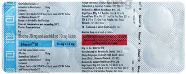 Bilazest M Tablet provides relief from allergic symptoms such as blocked or runny nose, sneezing and itchy or watery eyes caused by seasonal hay fever (allergic rhinitis), seasonal allergies, and allergies. It works by reducing certain substances in the body that are responsible for the allergic symptoms.