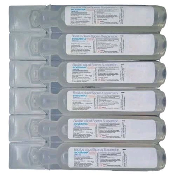 Biogermina 2 Billion Spores Oral Suspension 10x5 ml is used to restore and maintain a healthy balance of intestinal bacterial flora. It helps correct imbalances in intestinal bacteria caused by diarrhoea, antibiotics, or chemotherapy. It inhibits the growth of harmful pathogens in the gut.