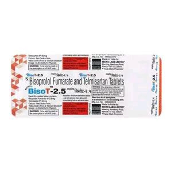 Bisobrit 2.5 Tablet 15's is used to treat hypertension (high blood pressure) and angina pectoris. It contains Bisoprolol, which affects the body's response to some nerve impulses, particularly in the heart. As a result, it slows down the heart rate and makes it easier for the heart to pump blood around the body. Thereby, it helps lower the raised blood pressure and reduces the risk of having a stroke, a heart attack, other heart problems, or kidney problems in the future. It may cause side effects like tiredness, weakness, nausea, vomiting, diarrhoea, or constipation. Before taking this medicine, you should tell your doctor if you are allergic to any of its components or if you are pregnant/breastfeeding, and about all the medications you are taking and pre-existing medical conditions.