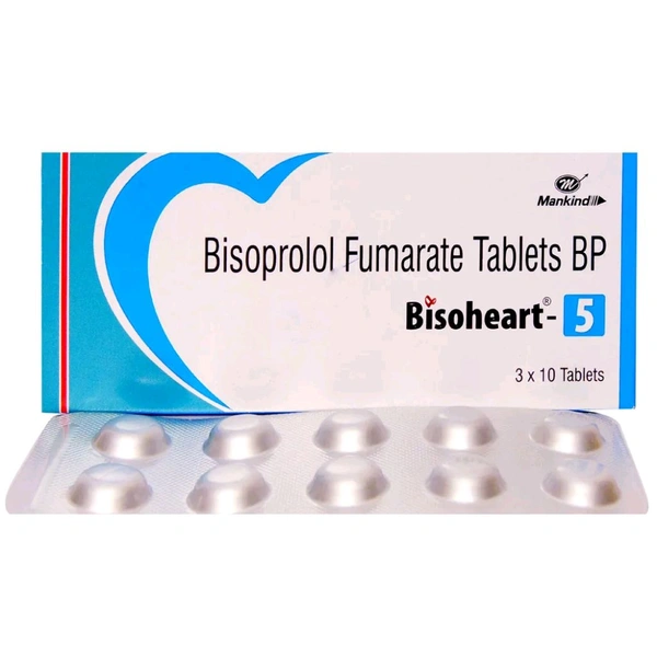 Bisoheart 5 Tablet belongs to the class of antihypertensive medicines used in the treatment of high blood pressure and angina pectoris. This medicine also helps reduce the chances of heart problems such as heart attack and stroke. This medicine contains bisoprolol which alters the response to nerve impulses in the heart thereby making the heart pump blood easier. Common side effects include tiredness, weakness, nausea, vomiting, diarrhoea, or constipation.