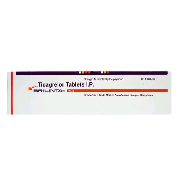 Brilinta 90 mg Tablet is taken to prevent heart attack or stroke in people at high risk of heart disease. It helps to prevent blood clots in people with acute coronary syndrome (heart doesn't receive enough oxygen) who have had stents placed in blood vessels in their heart. It contains Ticagrelor, which prevents blood clot formation in the blood vessels by making platelets less sticky. In some cases, you may experience dyspnea (shortness of breath), tightness in the chest, blurred vision, nosebleeds, dizziness, faintness, or lightheadedness. Before taking this medicine, you should tell your doctor if you are allergic to any of its components or if you are pregnant/breastfeeding, and about all the medications you are taking and pre-existing medical conditions.