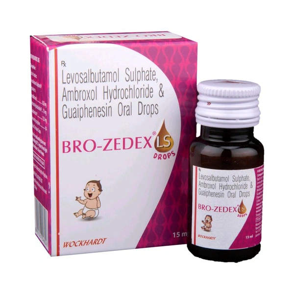 Bro-Zedex LS Drops is a medicine with the combination of Levosalbutamol, Ambroxol and Guaifenesin that is used to relieve productive cough, sore throat and asthma in children. It helps to relieve symptoms such as wheezing, shortness of breath, chest tightness, breathing difficulties, coughing, etc.