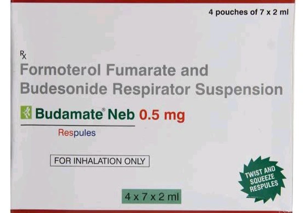 Budamate Neb 0.5 mg Respules is used to treat asthma symptoms and chronic obstructive pulmonary diseases (COPD). It contains Budesonide and Formoterol, which works by reducing the irritation and swelling by acting inside the nasal passage and airways lining cells and stopping the release of certain chemicals responsible for causing inflammatory reactions and allergies. Thereby, it provides relief from sneezing, runny or blocked nose and sinus discomfort. Also, it relaxes and widens respiratory airway muscles, making it easier for asthma and COPD patients to breathe. Some people may experience side effects such as fungal infection in the mouth, headache, sore throat, hoarse voice, upper respiratory tract infection, flu, cough, back pain, increased heart rate, and trembling. Before taking this medicine, you should tell your doctor if you are allergic to any of its components or if you are pregnant/breastfeeding, and about all the medications you are taking and pre-existing medical conditions