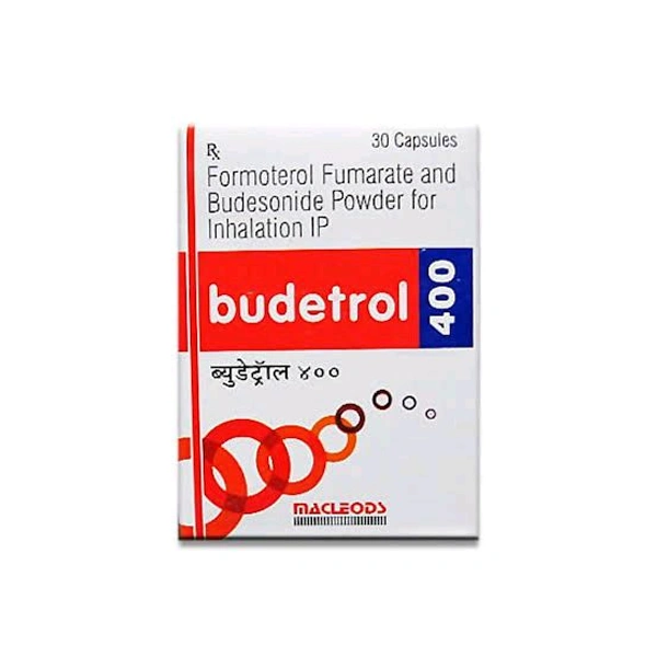 Budetrol 400 Rotocap is used to treat asthma symptoms and chronic obstructive pulmonary diseases (COPD). It contains Budesonide and Formoterol, which works by reducing the irritation and swelling by acting inside the nasal passage and airways lining cells and stopping the release of certain chemicals responsible for causing inflammatory reactions and allergies. Thereby, it provides relief from sneezing, runny or blocked nose and sinus discomfort. Also, it relaxes and widens respiratory airway muscles, making it easier for asthma and COPD patients to breathe. Some people may experience side effects such as fungal infection in the mouth, headache, sore throat, hoarse voice, upper respiratory tract infection, flu, cough, back pain, increased heart rate, and trembling. Before taking this medicine, you should tell your doctor if you are allergic to any of its components or if you are pregnant/breastfeeding, and about all the medications you are taking and pre-existing medical conditions
