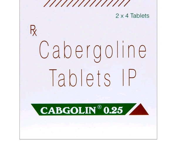 Cabgolin 0.25 Tablet is used to treat hyperprolactinemia (high levels of prolactin, a natural substance that allows breast development and milk production in women). It helps stop breast milk production soon after stillbirth, abortion, miscarriage, or even after delivery if you do not want to breastfeed your baby once you have started. Besides this, it can also be used to treat other conditions caused by hormonal disruption that can lead to the production of high levels of prolactin. This includes lack of periods, infrequent and very light menstruation, periods when there is no ovulation, and the secretion of milk from your breast without breastfeeding, even in conditions where high prolactin levels are caused by unknown causes (idiopathic hyperprolactinemia) or pituitary gland tumours in both men and women. It contains cabergoline, which decreases the amount of prolactin in the body. In some cases, you may experience side effects such as blurred vision, drowsiness, constipation, vomiting, dizziness, headache, and fatigue.
