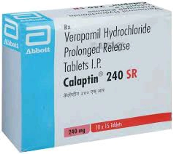 Calaptin 240 SR Tablet is used to treat angina (heart-related chest pain), high blood pressure, and some types of irregular heartbeats (arrhythmia). It works by relaxing blood vessels to lower blood pressure. This helps to reduce the workload of the heart.