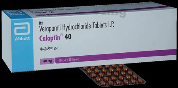 Calaptin 40 mg Tablet is a medication used for managing high blood pressure, angina pectoris (chest pain or discomfort), and irregular heartbeats. It works by relaxing blood vessels and slowing down heart activity, which reduces blood pressure and improves blood circulation throughout the body.