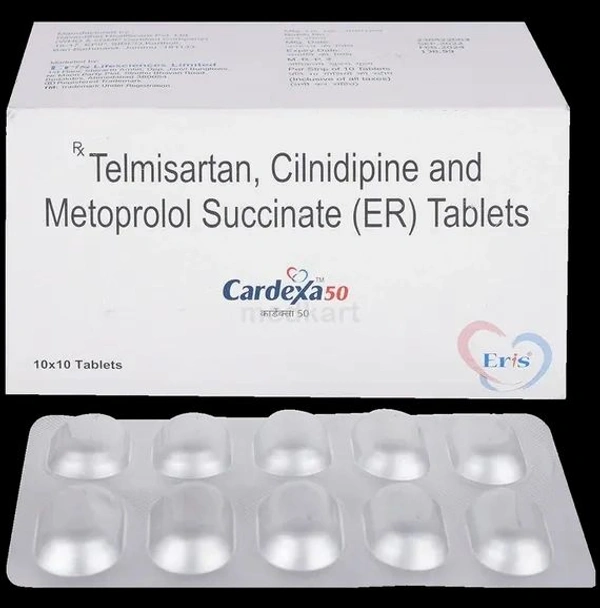 Cardexa 50 Tablet is used to treat hypertension (high blood pressure). It works by relaxing and widening the blood vessels. Besides this, it also slows down the heart rate and makes it easier for the heart to pump blood throughout the body.