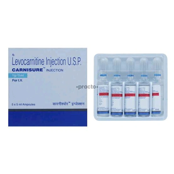 CARNISURE 1GM INJECTION is used to manage carnitine deficiency, which can occur at birth, as a result of certain metabolic disorders, or as a result of a medical procedure such as hemodialysis. This reduced level of levocarnitine results in decreased energy, leading to muscle weakness.