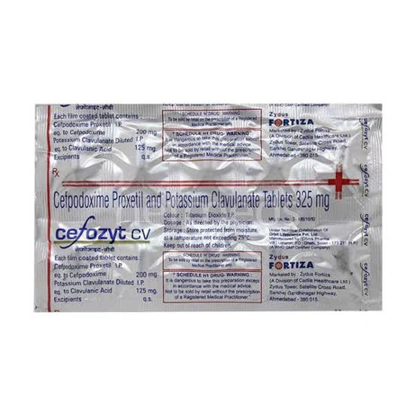 Cefozyt CV (200/125 mg) Tablet is a combination of cefpodoxime and clavulanic acid. It is used to treat bacterial infections affecting your lungs, nose, throat, ears, skin and urinary tract. This medicine is also used in treating sexually transmitted diseases like gonorrhoea.