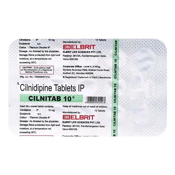 Cilnitab 10mg Tablet is a medicine used to treat high blood pressure (hypertension). It belongs to a class of medicines known as calcium channel blockers, which help to lower blood pressure. This helps prevent heart attacks and strokes.