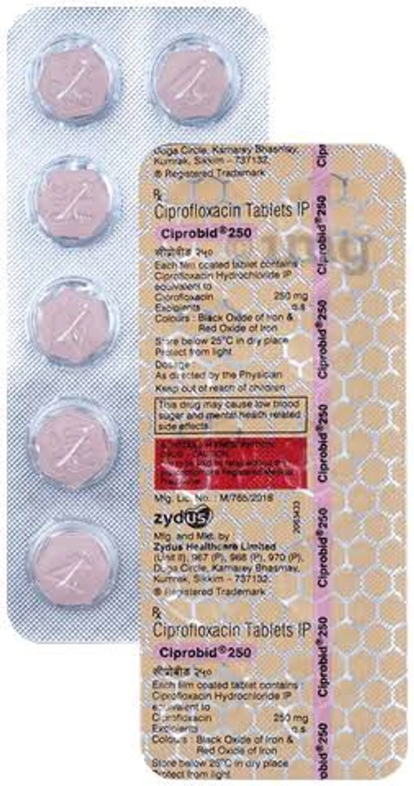 Ciprobid 250 Tablet is an antibiotic, used in the treatment of bacterial infections. It is also used in treating infections of the urinary tract, nose, throat, skin and soft tissues and lungs (pneumonia). It cures the infection by killing and stopping the growth of the infectious microorganisms.
