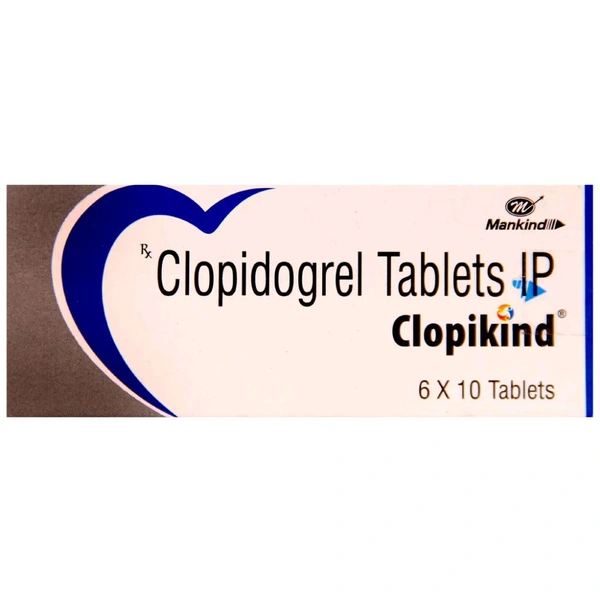 Clopikind Tablet is used for the prevention of heart attack or stroke in people at high risk of heart disease. It contains Clopidogrel, which helps in preventing the formation of harmful blood clots (plaque) in your veins. It makes your blood flow easily through your veins, making it less likely to form a serious blood clot. So, it helps prevent blood clots if you have an increased risk of having severe chest pain (unstable angina or heart attack), stroke, or peripheral arterial disease (heart problem due to narrowed blood vessels). In some cases, you may experience side effects such as nosebleeds, heavier periods, bleeding gums, easy bruising, diarrhoea, stomach pain, indigestion, or heartburn. Before taking this medicine, you should tell your doctor if you are allergic to any of its components or if you are pregnant/breastfeeding, and about all the medications you are taking and pre-existing medical conditions.