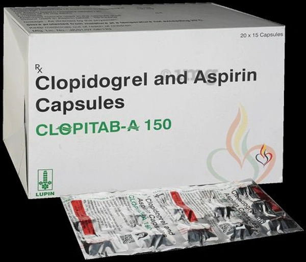 Clopitab-A 150 Capsule is a combination of two antiplatelet medicines or blood thinners. It prevents blood from clotting inside the veins and arteries. This helps the blood flow freely around your body thereby preventing a heart attack or stroke (or deep vein thrombosis or pulmonary embolism).