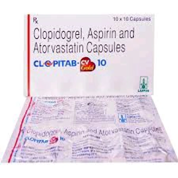 Clopitab-CV Gold 10 Capsule is used for the prevention of heart attack. It is a combination of medicines that prevent clot formation in the blood vessels. It also helps to reduce increased cholesterol and triglycerides levels.