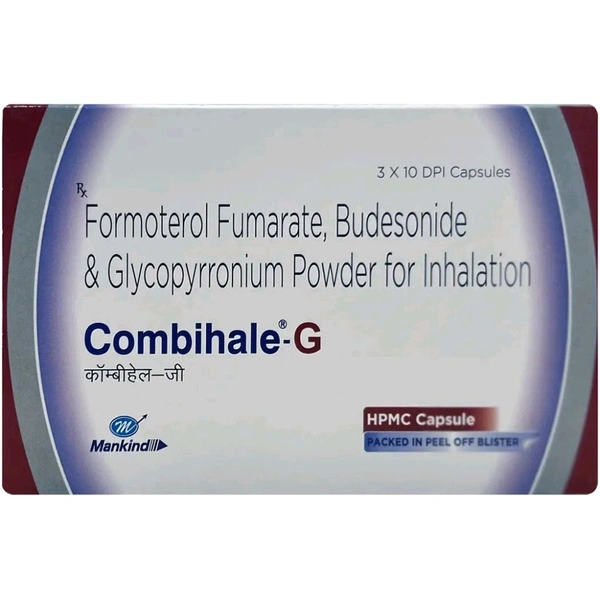 Combihale-G Capsule is a combination of three medicines. It is used in the treatment of chronic obstructive pulmonary disease (COPD). It works in various ways and reduces the symptoms of the disease such as coughing, chest tightness, and shortness of breath.