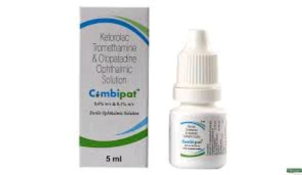 Combipat Ophthalmic Solution 5 ml is used to treat allergic eye disease. It contains Ketorolac and Olopatadine, which works by blocking the release of several chemical messengers that cause inflammation (redness and swelling), and pain in the eye. It may cause side effects such as burning sensation, eye pain, eye discomfort, eye irritation, headache, dry nose, and taste change. Before taking this medicine, you should tell your doctor if you are allergic to any of its components or if you are pregnant/breastfeeding, and about all the medications you are taking and pre-existing medical conditions.