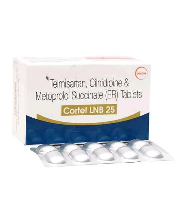 Cortel Lnb tablet is used to treat high blood pressure (hypertension). It contains a combination of three antihypertensive medications: metoprolol, cilnidipine, and telmisartan. This medication is prescribed when a single medication is not sufficient to manage high blood pressure effectively.