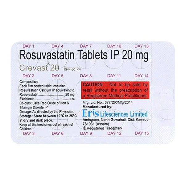 Crevast 20 mg (Rosuvastatin) is a statin medication used to lower high cholesterol (LDL & triglycerides), reduce the risk of serious cardiovascular events like heart attacks, strokes, and angina, and slow the buildup of plaque in arteries (atherosclerosis) by inhibiting cholesterol production in the body, often combined with diet and lifestyle changes. Variations like Crevast A or CV may also contain aspirin for added clot prevention.