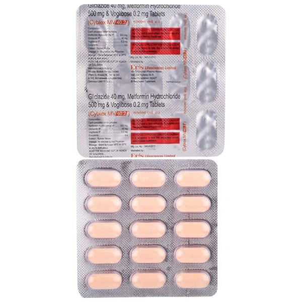 Cyblex MV 40.2 Tablet is a combination medication used to manage Type 2 diabetes mellitus in adults, primarily when diet, exercise, and other medications fail to control blood sugar. It helps regulate blood sugar levels, reducing the risk of diabetes-related complications such as kidney damage and nerve damage.
