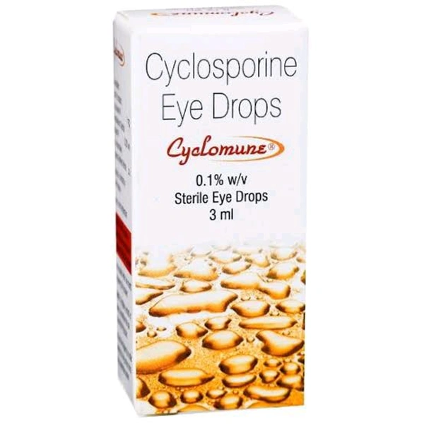 Cyclomune 0.1% Eye Drop 3 ml is used in the treatment of severe keratitis (inflammation of the cornea) in adults. It is also used to treat dry eyes in patients whose condition has not been improved with artificial tears. This medicine contains cyclosporine which helps increase tear production and decrease inflammation (swelling) in the eye.