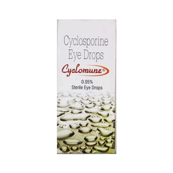 Cyclomune 0.5% Eye Drop 3 ml is used in the treatment of severe keratitis (inflammation of the cornea) in adults. It is also used to treat dry eyes in patients whose condition has not been improved with artificial tears. This medicine contains cyclosporine which helps increase tear production and decrease inflammation (swelling) in the eye.